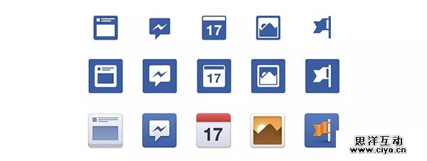 即使Facebook本身并不一致,但这样的设计不会一直那么糟糕。下面显示的是它使用的两种主要图标设计。