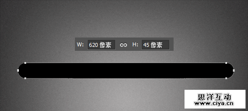 下面,我们开始进度条的绘制。用圆角矩形工具,画一个620*45像素的圆角矩形。