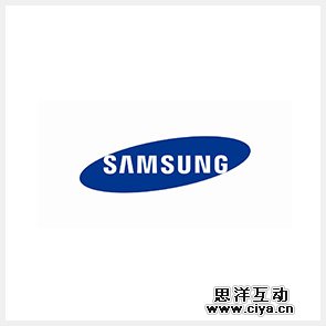 三星标志以倾斜蓝色椭圆为背景,椭圆中间时白色字体 SAMSUNG。其实三星 Logo 中 SAMSUNG 是韩文中“三星”的韩语拼音。