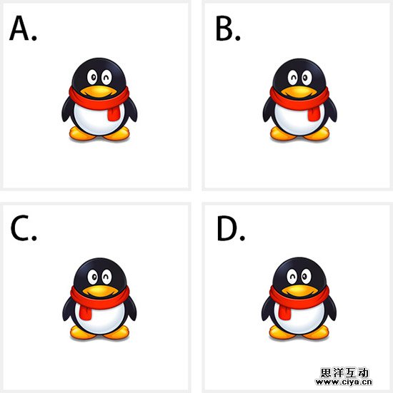 微信的 Logo 设计更加接近 iOS 的主题和应用,优雅。对比颜色单纯的微信,QQ 则是一只围巾系在右边,左眼 Wink 的企鹅,给人卖萌的印象,这与两个产品针对不同年龄用户群的区分定位也有紧密的关联。