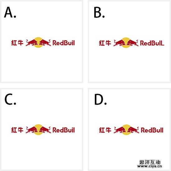 红牛品牌的英文名为“Red Bull”,品牌标志由两头相抵的红牛和一个太阳组成,设计明快醒目,充满能量与力量,显得斗志昂扬,活力四射,与产品功能诉求相类似。只要会拼写 RedBull,这道题的答案就八九不离十了~