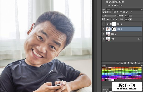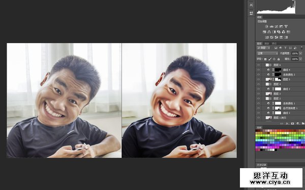 第三步:调整对比度,对脸部的明暗关系进行去污、“手绘”