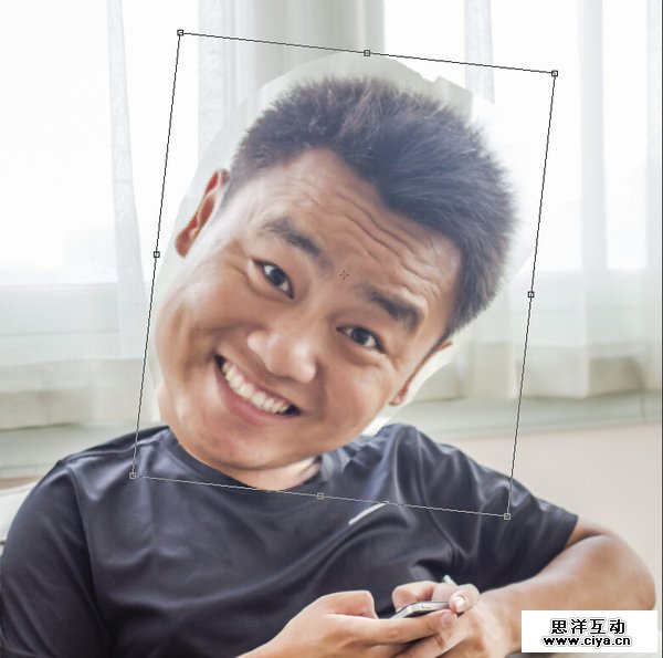 1、头部用选区工具进行圈出然后ctrl+T整体变大,因为我的姿势是歪脖子,所以头部也进行夸张的歪。