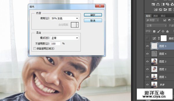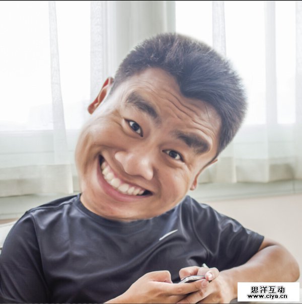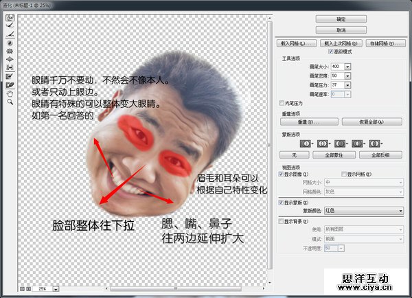2、五官变化:不同的人个人建议采用不同的手法。我的五官是 脸部轮廓、嘴巴、眉毛比较夸张,所以进一步通过液化增加夸张度。