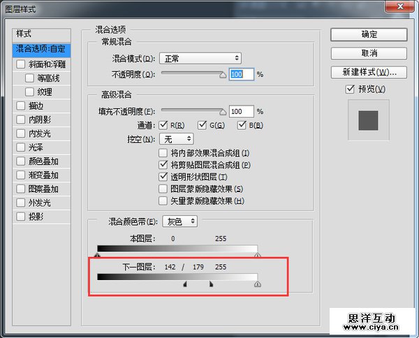 这样直接混合的色彩过渡不够柔和,我们按住alt,在黑色滑块中间单击一下,把它分成两半,这样就可以细致的调节暗部的阈值了。总之是什么原理就不要管他了,分开之后两边调整一下看下效果。