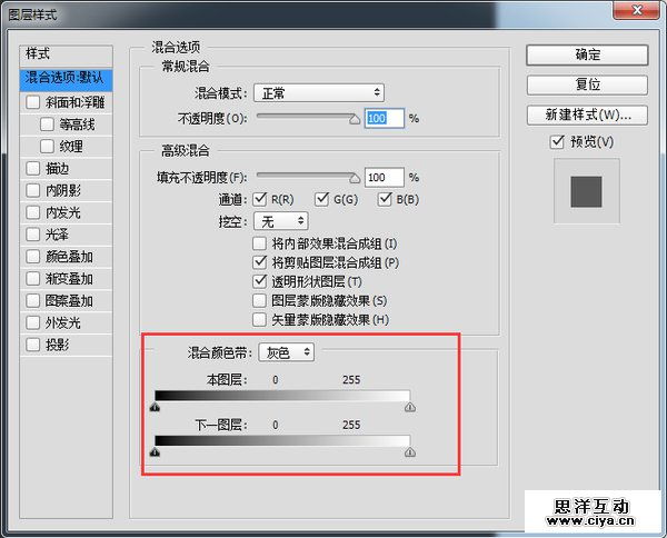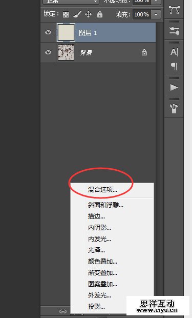 2.修改这个“图层1”的混合选项,就是做效果的那个菜单的第一个。