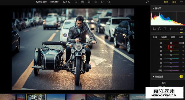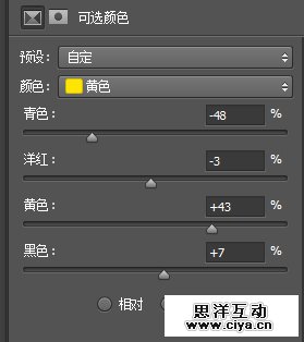 接下来,我们使用可选颜色增强黄色也就是车灯的表现力: