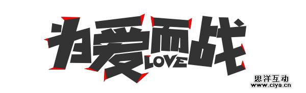 “为爱而战”是帮同事调整修改后的一个字体。比较休闲、娱乐性质的。所以稍微灵动一点的排列方式,使其看起来更加轻松活泼。在字体的笔画的很多位置加了尖角衬线效果的处理方式,加强个性和视觉冲击力。