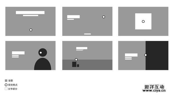 (C组的深色块是主体物,D组的白点是视觉焦点,白色块是文字。)