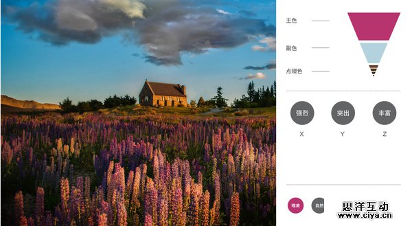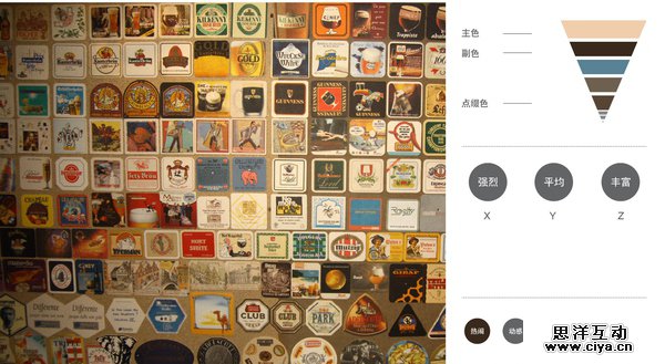 而在网上大部分的配色教程里,则用“色卡”来解释色组的视觉心理的,“色卡”是从一张照片里提炼出三到六个主要色彩组合起来的配色方案,并认为“色卡”和原照片的视觉心理效果(情绪)是相同的,因此大部分设计作品会以此为参照做配色方案。