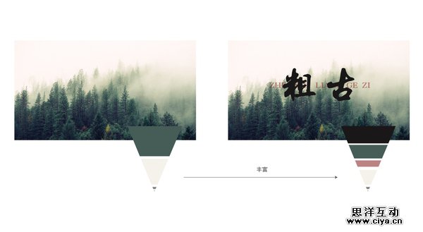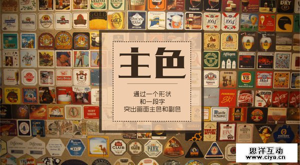 最后的例子,是关于形状的颜色和透明度设置的一个示范。由于这张照片的色组属性太过平均,所以我用一个形状压住一个副色调,然后用“粗古”字体压住主色调,将这个色组的“平均”属性转为“突出”。这个例子是想表达:形状图形的色调选择,关键在于你想怎么改变色组的属性,而半透明的设置,可以改变色组的“丰富”属性。