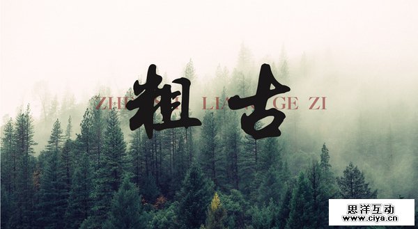 第二个例子,是一个“图片突出文字”的例子。虽然这张照片的色彩属性有“强烈”和“突出”,但色彩却是“单调”的,我的做法是先加上两个粗笔画的毛笔字(粗古),突出一个主色。然后再放一段酡红色的英文,是色组变得丰富,同时配合“粗古”,让色彩的情绪表达地更加明显。