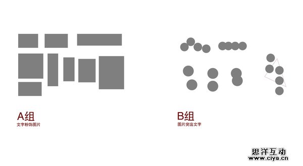 A组是“图片突出”,文字存在的目的只是粉饰这张照片而已。