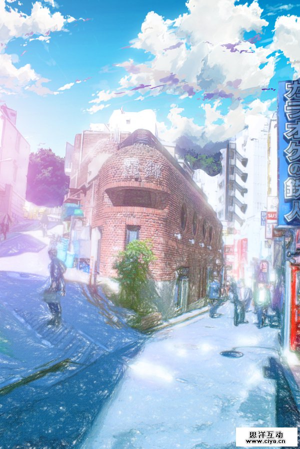 换成真正手绘的天空,可以主动引导观者的视觉感受往动漫这个方向靠拢,从而提升整体画面的动漫感觉。
