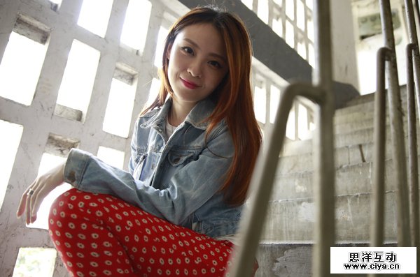 建议让妹子坐在楼梯上,然后蹲下来从侧面拍摄。让扶手作前景,利用扶手的形状特点拍出复古的照片。示例: