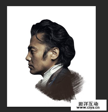 再用墨迹笔刷对准原来墨迹笔刷的位置,在人物蒙版上刷一笔白色的墨迹,出现墨迹边缘。