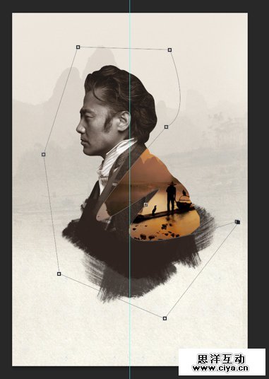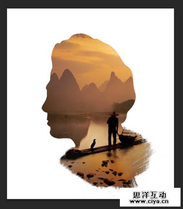 重复第8步和第9步的原理,Ctrl+点击半张帅脸的缩略图,再复制一层风景层,像第9步一样给风景层添加蒙版。