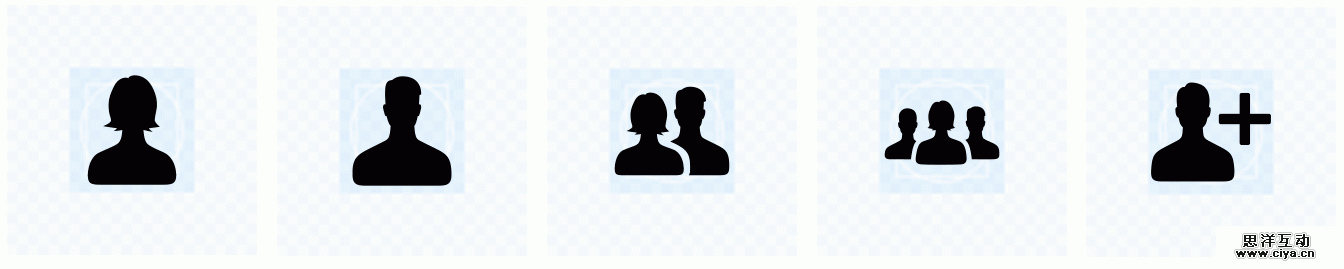 而早的“群”图标使用的是两个男性剪影和一个女性剪影构成的,女性剪影置于较大男性剪影的左后方。而新的图标我选择了使用三个不同的图标来展示,同样的我将唯一的女性图标放大置于中央。