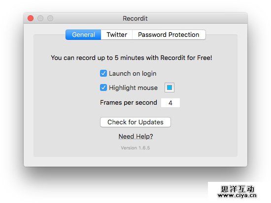 Recordit 提供了免费版和 Pro 收费版,免费版每秒帧数只能4帧。