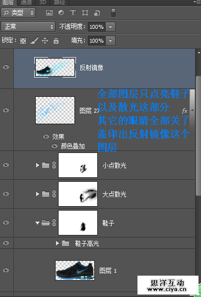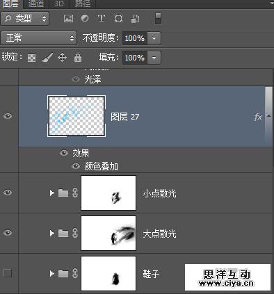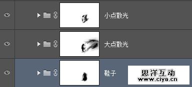 我把小点的散光和大点的散光以及鞋子分别创建了3个组,然后分别在组上面添加蒙版,用黑色画笔擦掉不要的地方,画笔的不透明度以及流量自己把握,我这里就不一一说明了。