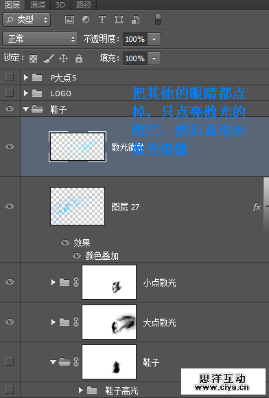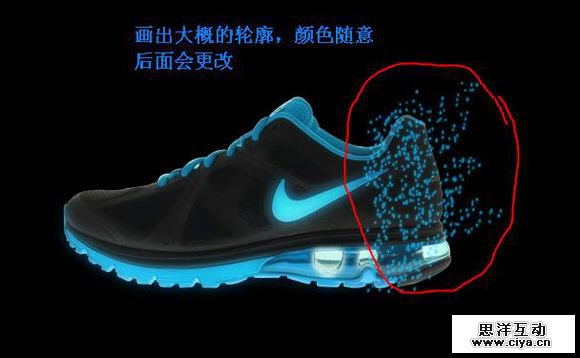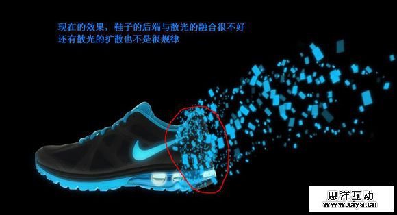 鞋子部分已经处理完了,现在制作荧光分散的效果: