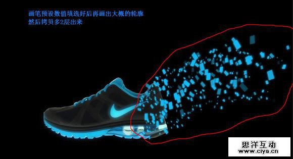 编者按:分散特效还能这么玩!今天@P大点S微博 给同学们来一枚效果超炫的跑鞋海报教程,效果特别惊艳,已经有不少同学交作业,想练手的走起。