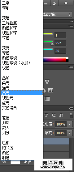 亮光:通过增加或者减小对比度来使图像更亮或者更暗,具体取决于混合色