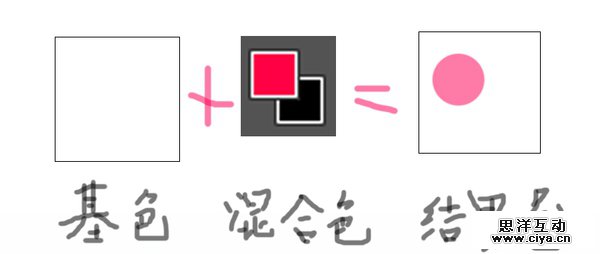 结果色,在正常模式下,这个结果是应该是红色的,但是由于我调整了一定的画笔透明度,所以底部的白色有一部分显示出来了,得到这种类似于粉色的结果色。