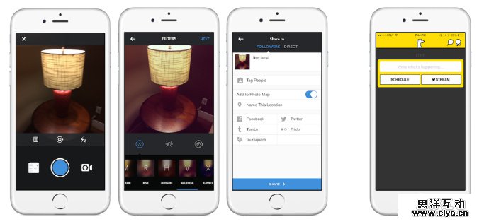 发布到Meerkat上只用点一下,发布到Instagram上只用点三下