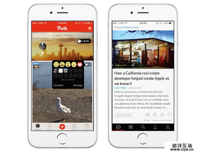 Path和Flipboard是每个像素都趋近完美的典范。不过要注意,如果一个段落混合了粗体紧凑型的san-serif字体与serif字体,它会在Flipboard上表现得不平衡。