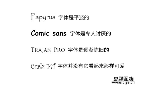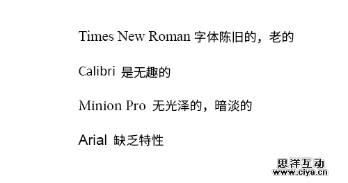 如果你在语句或是设计中使用默认字体,你是在告诉全世界你不知道还有其他的字体。Times New Roman 和Calibri不是不好的字体,它们只是被过度使用,回到第一条规则,想想字体的性格,有比默认字体更好的字体吗?在大多数情况下,答案是以有的。