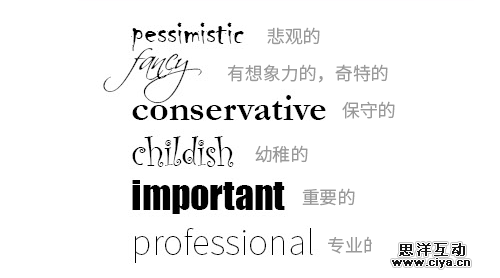 每个字体都有性格,人们比较喜欢一些有特色的东西。那么这些被喜欢的存在什么规则呢,了解你的目标人群,知道你文档的用途,选择一类字体,是你的目标人群所期望的字体,是你的文档的用途所需要的字体。