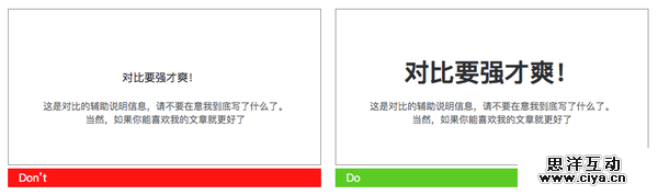 当我们希望突出某个信息的时候,一定要加强对比。像左图那种小小的对比,是很难达到对比的视觉效果的。因此,大胆使用「对比」,让画面更有主次。