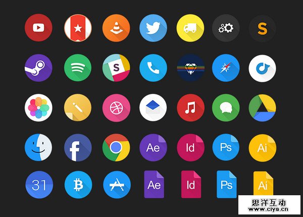 Goodwin 在选取这组图标的主色调上非常用心,整个配色方案上选取了6种扁平化的色彩来搭配,配合小幅度的阴影构造立体感。白色背景的使用让整个设计拥有了开放的感觉。