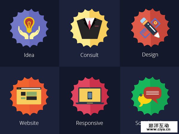 Wafaa的这套响应式图标模板设计整体充满了积极的情绪,协调的配色给人以奇妙的吸引力,统一的样式避免了杂乱无章的外观的出现。