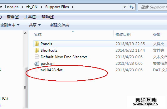 来,打开PS安装位置,找到locales 文件夹,及其子目录下zh cn,点开其下support files-tw10428,更改名称
