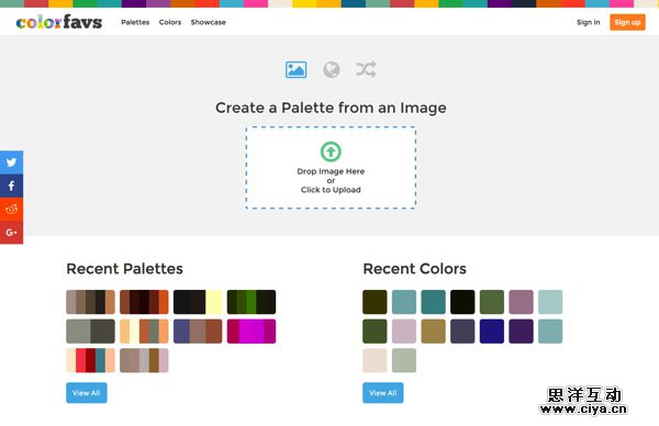 Colorfavs 工具界面简洁,不需要教学就知道怎么用啦,如果要上传图像,直接拖动到窗口 Upload 区域不能上传,很方便哦!