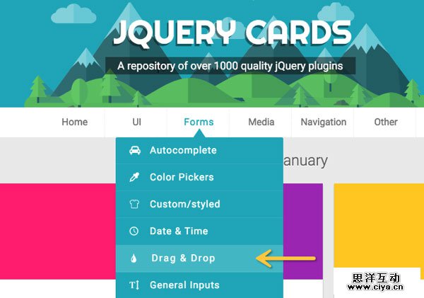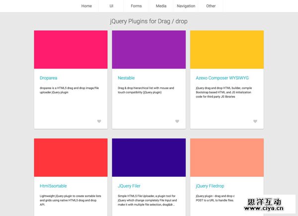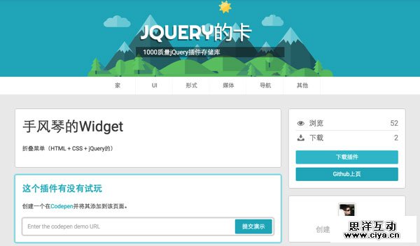 jQuery Cards 上的分类非常详细,各种常用、不常用的插件都有,比如UI界面类、表单类插件、媒体类、网站菜单导航等,划分非常清晰,代码大部分来自GitHub开源代码,免费使用(当然要注意看Lisense使用条款)