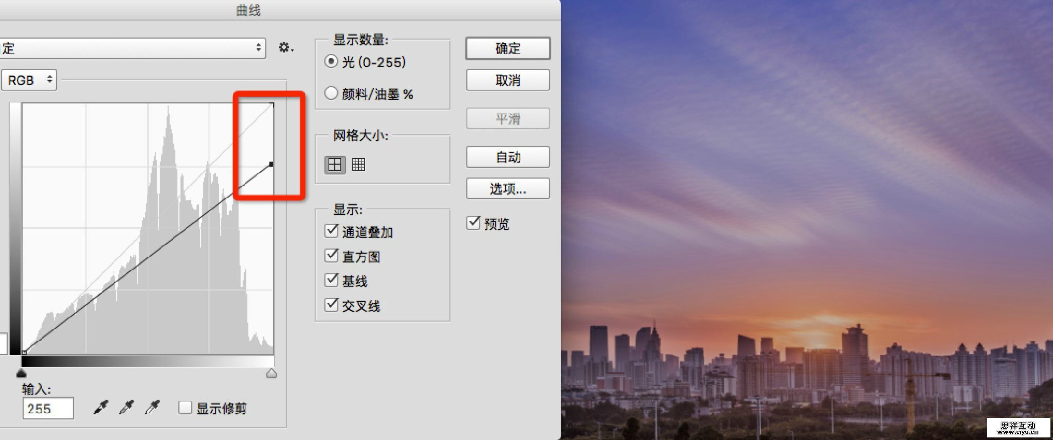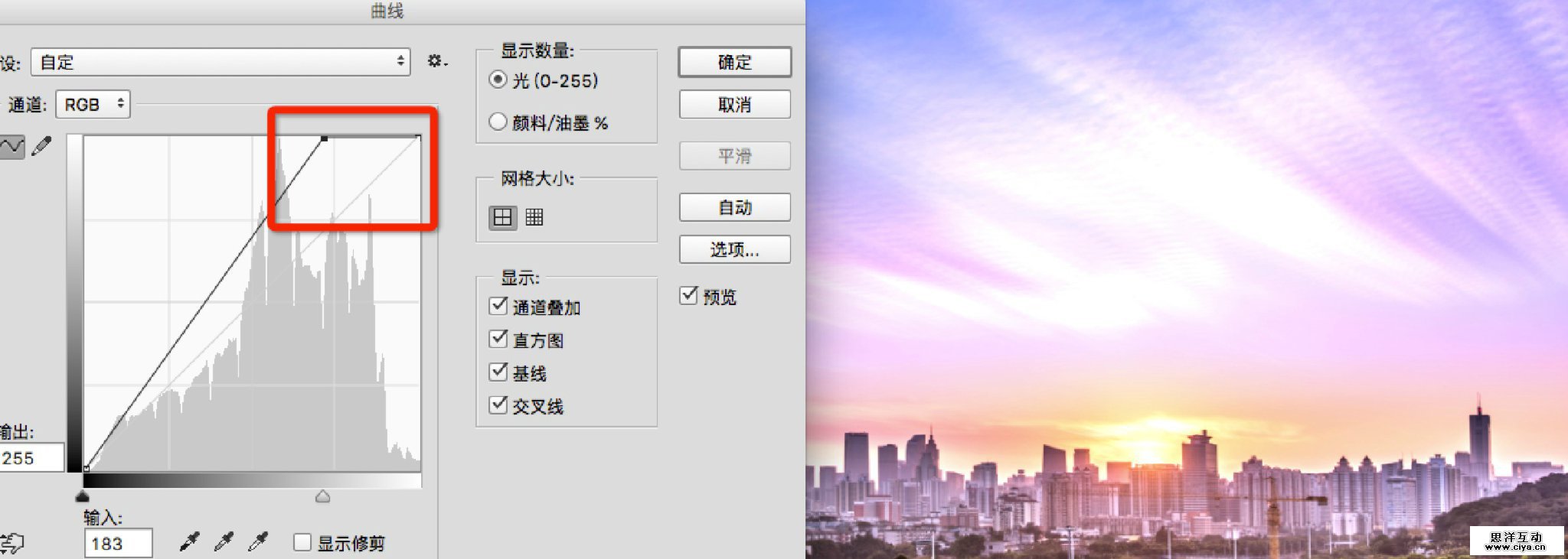 没错,是这样的,不过只在最亮和最暗锚点处进行调整,画面有可能出现过曝或死黑的情况,那么在调整曲线的时候就需要我们合理选择调色区间了,曲线操作中,点击曲线上的某一点后便可以将该点设置为锚点(锚点可添加多个),相当于固定了一个数值,然后再调整曲线其他部分就可以得到比较均衡的效果了,比如我们常用到的增加对比度的“S”曲线;