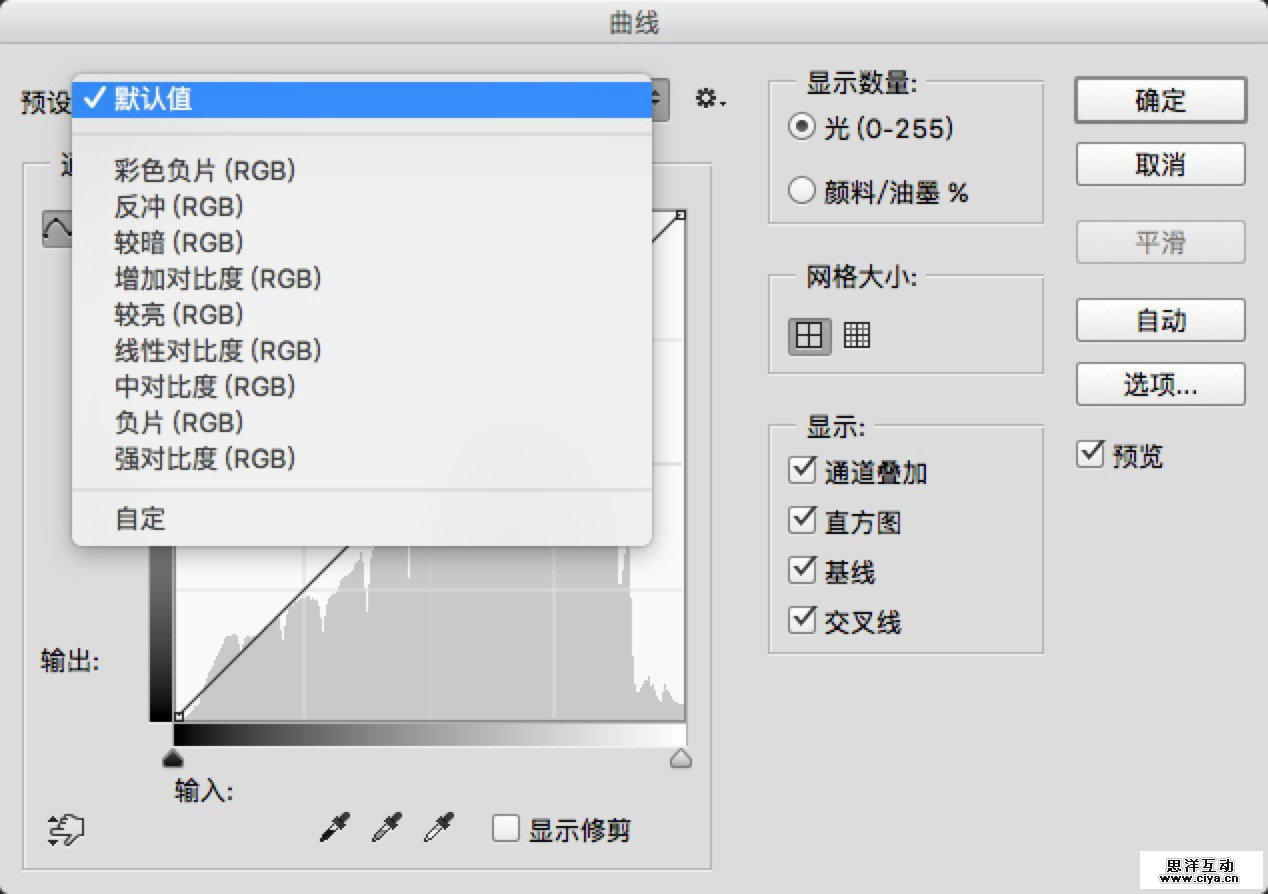 1,预设选择,PS软件本身为我们提供了一些常用的效果曲线,方便我们快速修片;