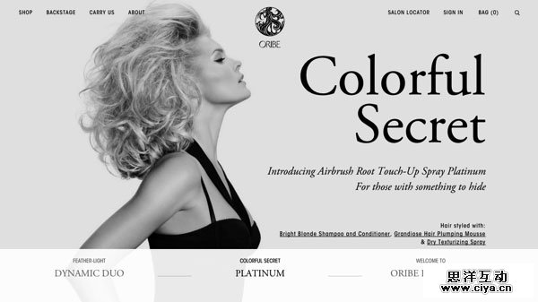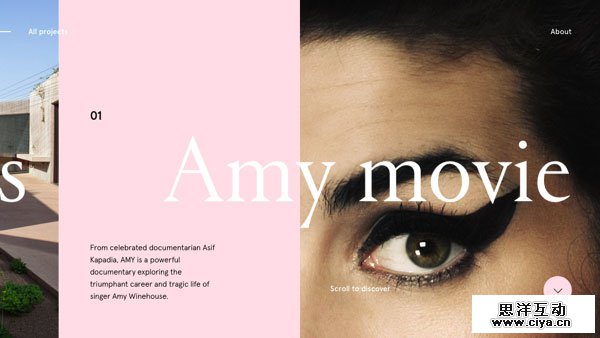 排版有点艺术感,有木有?此网页是横向滚动的,所以此网站的排版也是以横向设计为主。