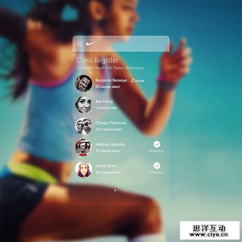 在下面的这个设计案例中我们可以看到,适合健身类的参与形式是,利用半透明的背景设计,将奔跑的女性的姿态在后面展现出来。这张照片,设计的主题和目的作为视觉线索(英:Visual Cue)很好的传递出来了,不会让用户感到迷惑。