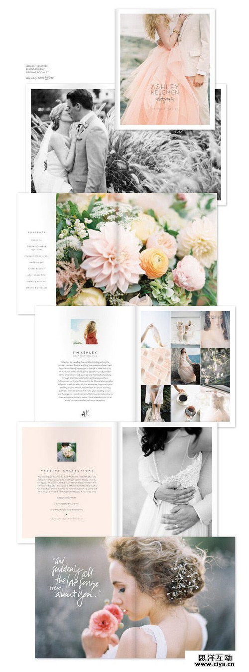 下面这是另外一种设计案例,他利用了不同的景深效果(将跟前儿的花瓣和背景进行了模糊),将视线聚集在整齐的构图上。这个结婚仪式的邀请函,能让人感到这是一对幸福的情侣。