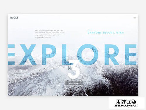 例如下面的这个设计案例,美国的犹他州的度假村的网页,通透的空气感,将丰富多彩的度假设施给表现出来了。通过大量的单色山地的景观,将主题滑雪度假村很好的展现出来。另外,通过从前到后的添加模糊效果,将酒店的名称和由来等这类重要的信息,配置在页首。