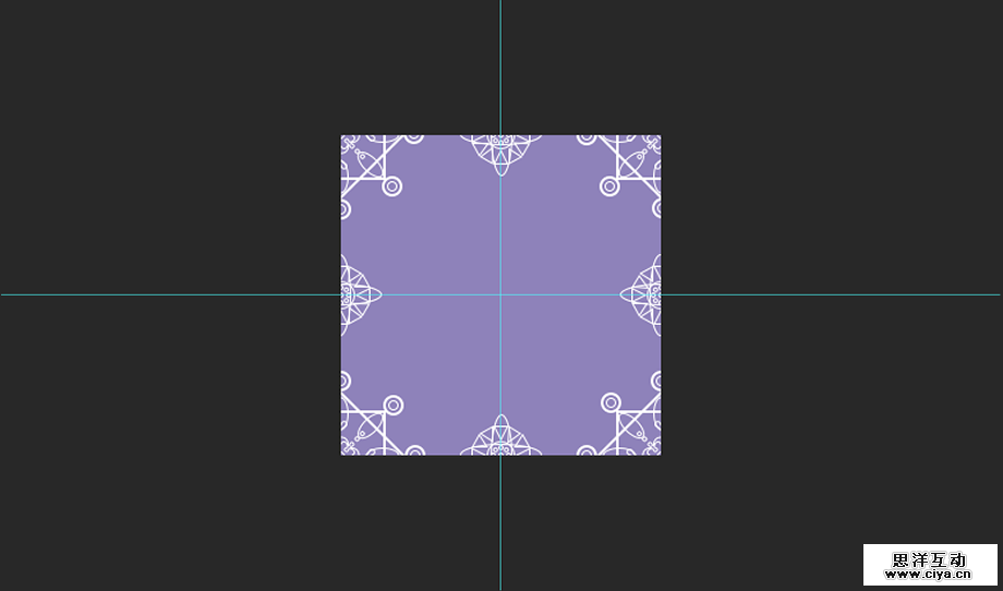 先让我们绘制最小的图案。打开PS,新建一个250*250px的文档。打开文档的标尺,并运用辅助线,将其定位到中心的位置。然后将前景色设置为紫色,填充紫色背景。如下图所示。