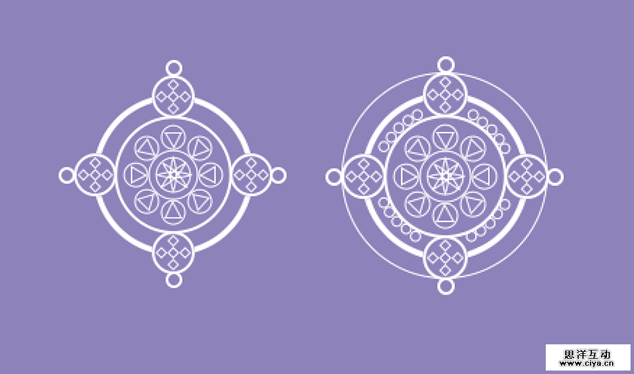 大型的图案当然是最为复杂的,但其实在演示了上面两个图案的绘制过程后,大家会发现其实这些图案都是由非常简单的图形所构成的。运用简单的几何图形就能创造出某种复杂美。