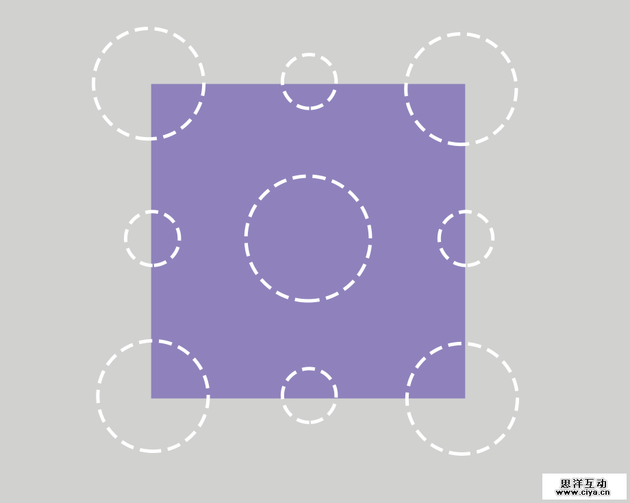 中型图案放置于画布的四角,它的中心刚好和四角顶点对齐。