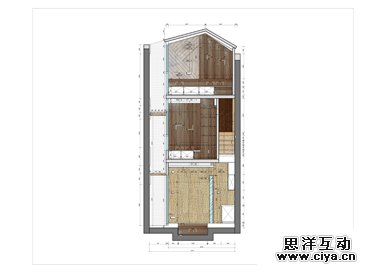 为减缓上下楼的压力,一层台阶下方设置多个不同收纳空间,剩余空间置入了厨房