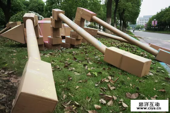 我们组的作品就叫《余忆童稚时》,就像名称一样,我们的设计理念就是让观赏者在情景中回忆逝去的童年。那时候的游戏很单纯却快乐,随便拿张纸在上面画格子,就是一个棋盘了。一根粉笔就能玩很久,一根皮筋两人拉就可以让一群人蹦跶整整一个下午。