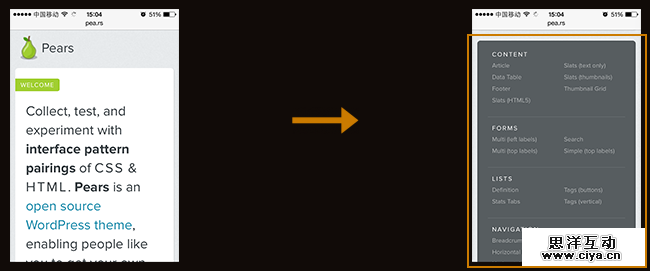 下面是一些处理响应式导航比较流行的技巧,由于下述几种导航方式还没有约定俗成的叫法,所以大家可以结合案例网站来理解他的实际用法: